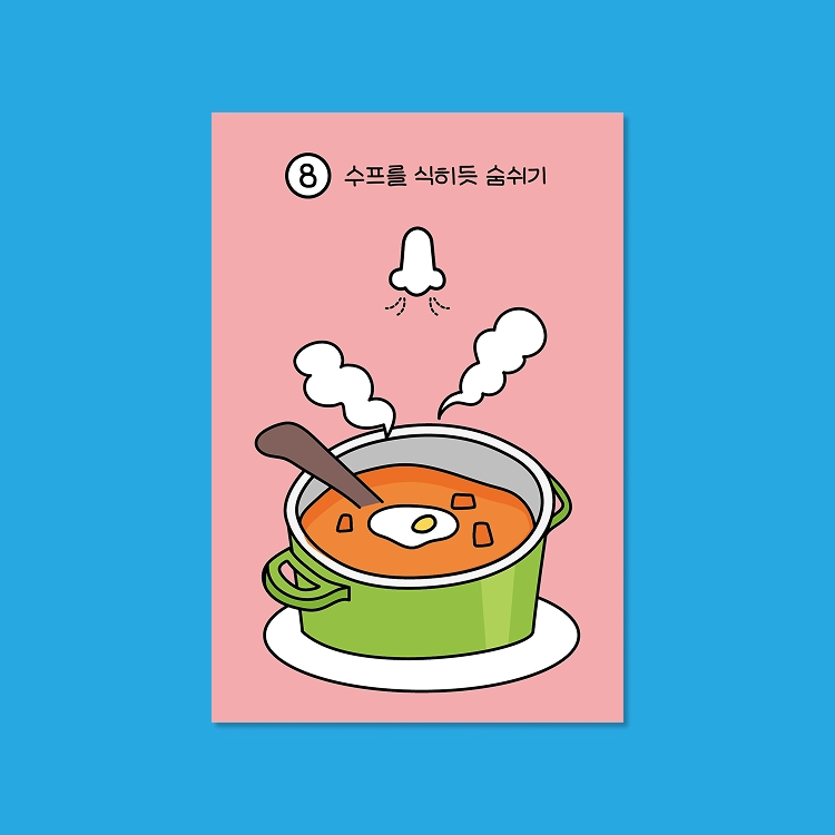 ‘어린이를 위한 숨쉬기 연습 카드’는 아이들이 다양한 숨쉬기 방법을 쉽고 재미있게 익힐 수 있도록 만든 카드형 활동 도구예요. 아이들에게 친숙한 동물 캐릭터와 따라 하기 쉬운 그림이 함께 있어서, 카드를 보며 심호흡을 놀이하듯 따라 하다 보면 자연스럽게 몸과 마음을 안정시키는 연습이 돼요.